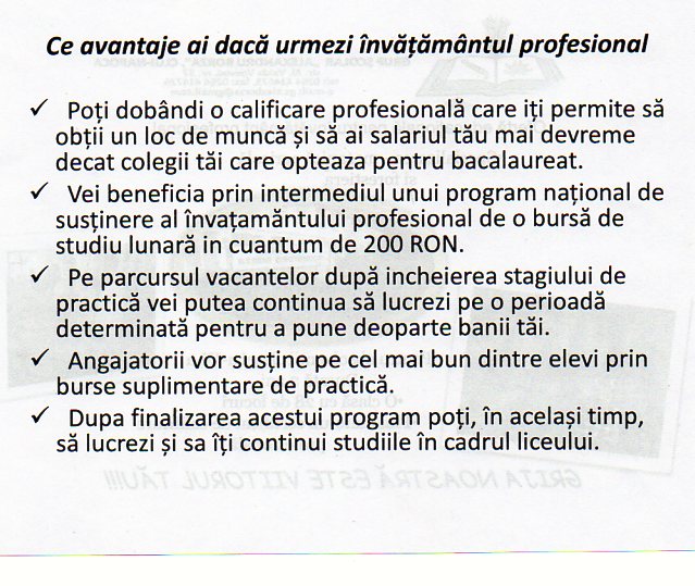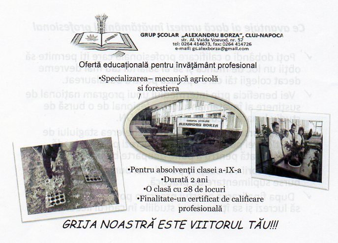 Oferta pentru invatamantul profesional Publicat de mai 10, 2012 de Mestecan Cornelia Partajează asta: Dă clic pentru a partaja pe Facebook(Se deschide într-o fereastră nouă) Facebook Dă clic pentru a partaja pe X(Se deschide într-o fereastră nouă) X Apreciază Încarc... Similare